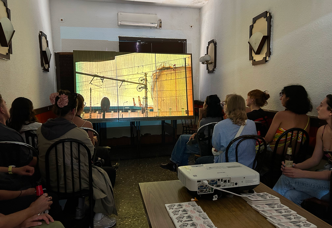At Bar Litoral, the roll was used upside down as a tablecloth on which we served some welcome tapas and invited participants to draw and express their impressions of the place, sparking a dialogue about Can Tunis and its history.